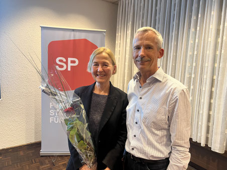 Regierungsrätin Susanne Schaffner und neu gewählter Präsident der SP Dulliken Edy Lütolf