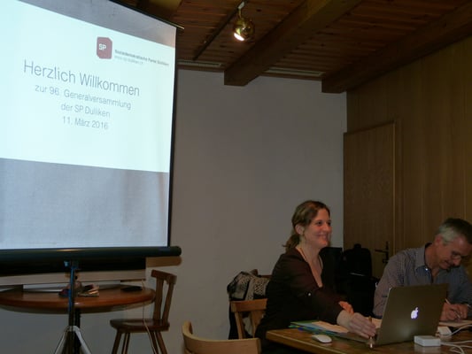 Die Präsidentin Andrea Bolliger freute sich sichtlich, so viele Mitglieder und Gäste zu ihrer 1. Generalversammlung als Vorsitzende der SP Dulliken begrüssen zu dürfen. Leider musste sie auch diverse Entschuldigungen vermelden.
